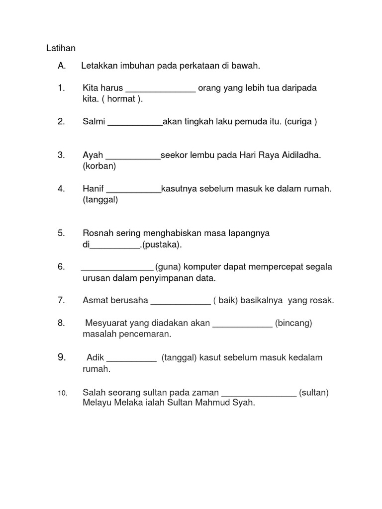 Jawapan Latih Tubi Kesalahan Ejaan Imbuhan Istilah dan Tatabahasa. Live worksheets Malay Pendidikan Islam Jawi Jawi tahun 3 IMBUHAN AKHIRAN - AN. Koleksi Soalan Latihan Nota Modul Bahasa Melayu BM.