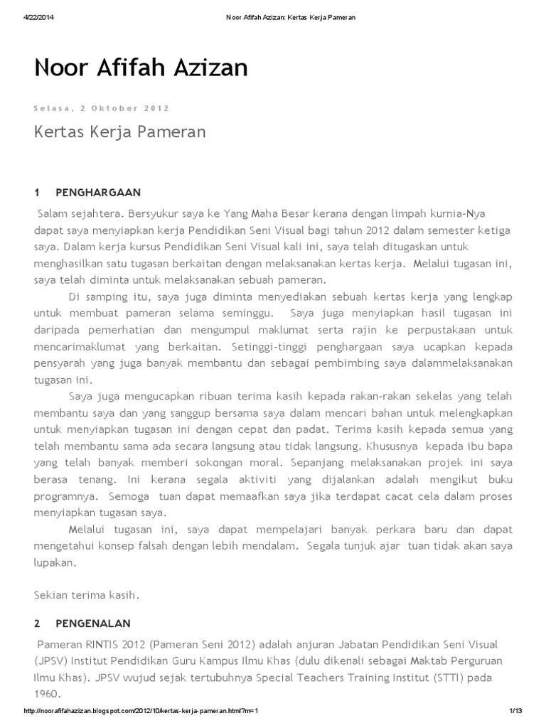 Contoh Kertas Kerja Pameran Pendidikan Kesenian